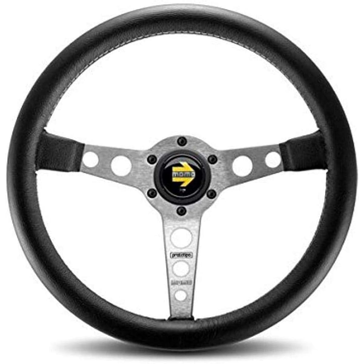 MOMO PRO35BK S Prototype Silver 350mm Leather Steering Wheel