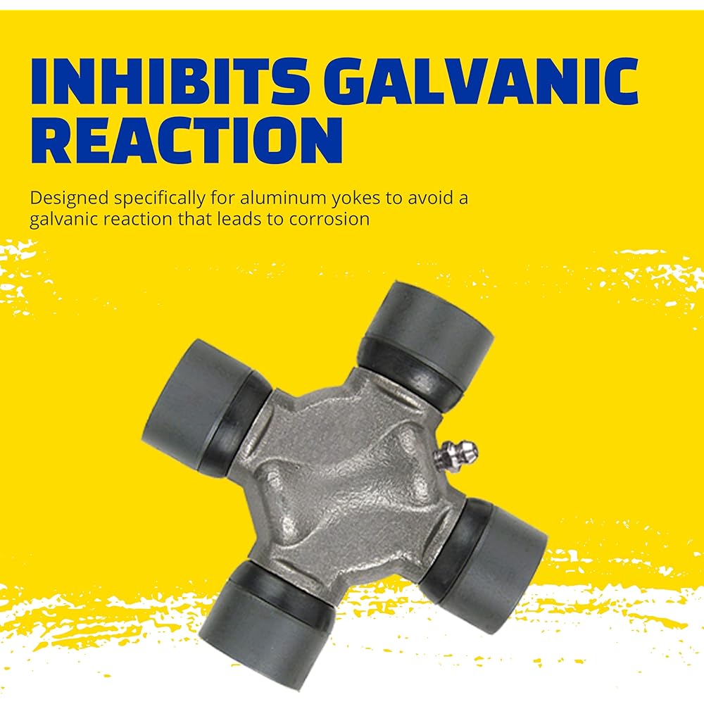 Chemically coated bearing cups and snap rings protect the aluminum yoke from corrosion. Greasable - new grease flushes away contamination and moisture. Needle bearings and snap rings supplied by original equipment suppliers. Nitrile rubber grease seals have a compressed double lip design that protects against contaminants. Durability and strength, consistent heat treatment for excellent bearing hardness ratio.