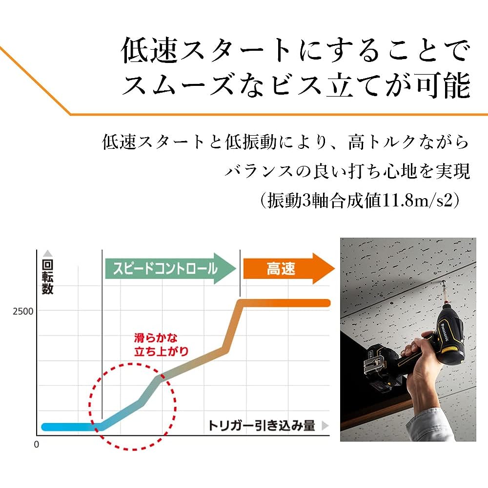 [Achieves both power and lightness and compactness in pursuit of stress-free. Lightweight and compact series that expands the range of work] A rechargeable impact driver with two 2.0Ah batteries that is lightweight and compact and achieves high power of 165N m. [1.1kg lightweight body] The 1.1kg lightweight body reduces fatigue when working upwards. Compact size allows work in narrow spaces. [10.8V high power] Covers a wide range of work with one unit. It can be used for any site and material, leading to increased work efficiency. [Smooth screw setting with low speed start] Low speed start and low vibration achieves a well-balanced hitting feeling despite high torque (3-axis vibration composite value 11.8m/s2). [Product specifications]〇Size: D138 x H190 x W65mm〇Weight: 0.80kg〇Chuck: One-touch bit lock method (dimensions up to step is 13mm)〇Maximum tightening torque: Approximately 165Nm〇Rotation speed: Approximately 165Nm min〇Blow Number (M12 nut lock): 0~3,700 times/min 〇Accessories: Battery pack 10.8V 2.0Ah (2 pieces), quick charger (for lithium ion only), plastic case 〇Color: Red