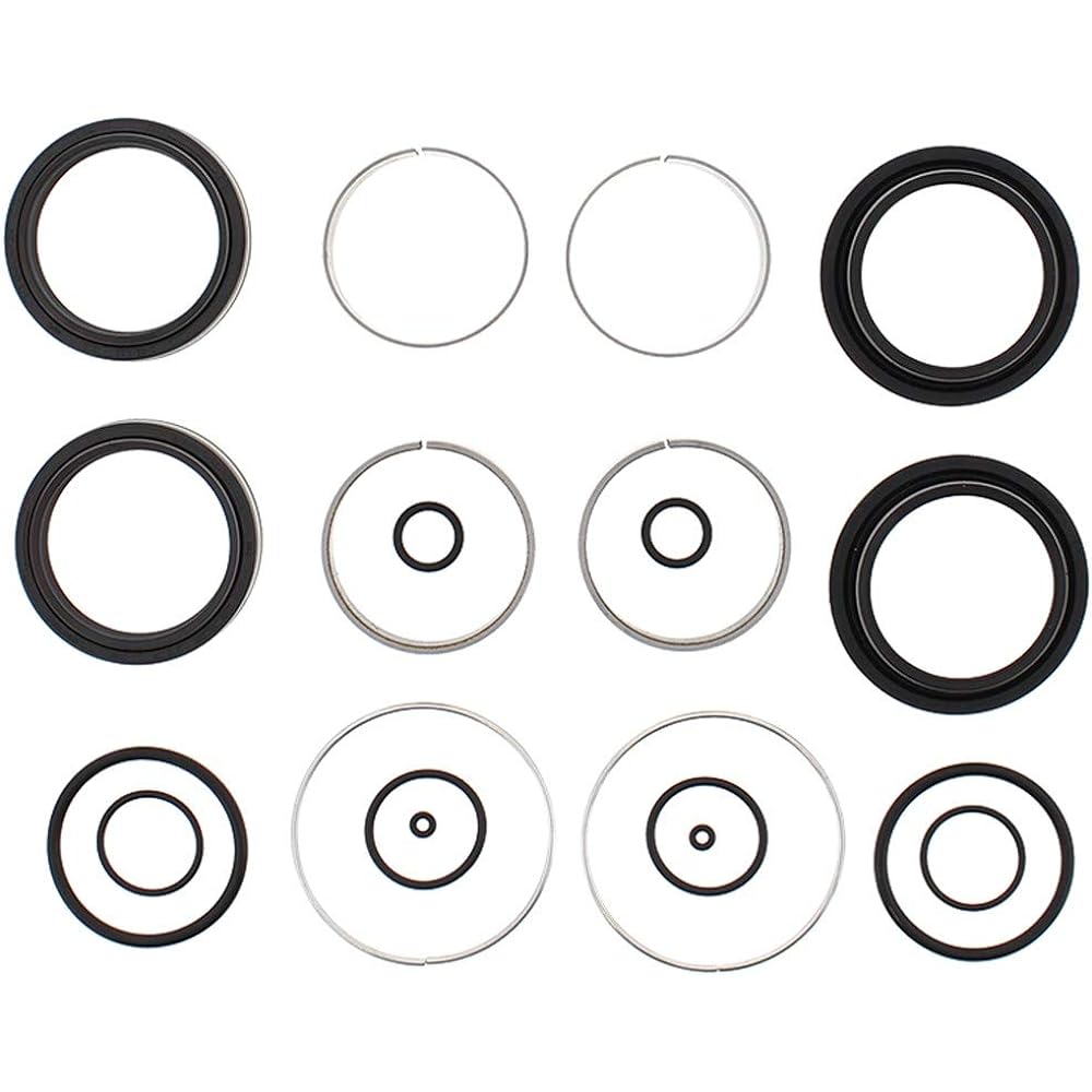 Contents: Dust seal, oil seal, Teflon coated bushing, wear ring, lock ring, copper washer, O-ring. One kit allows you to conveniently rebuild both forks.