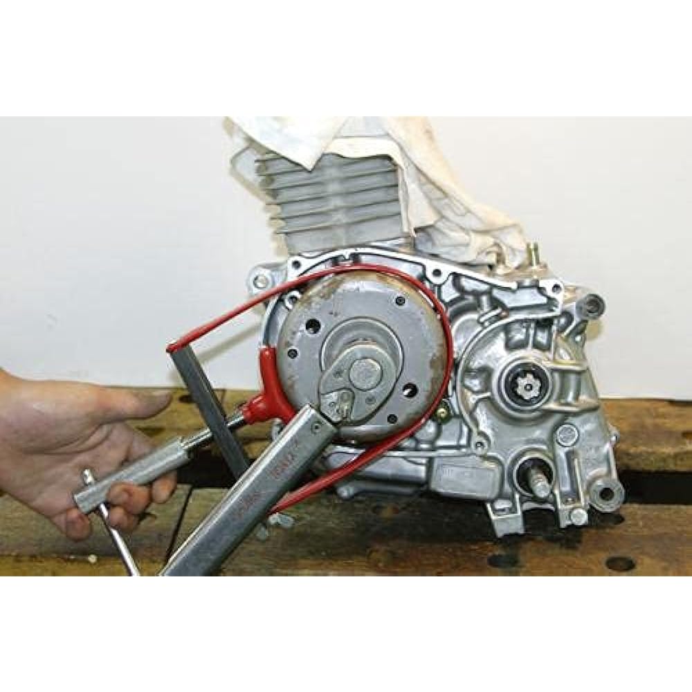 A rotor holder to prevent idle rotation during maintenance of pulleys, etc. By turning the shaft, you can easily tighten and fix it. pulley, clutch housing, flywheel. This is a special tool that is essential for removing and installing inner rotors, etc. ●Maintenance tool for scooters ●Can be used for φ60 to φ120