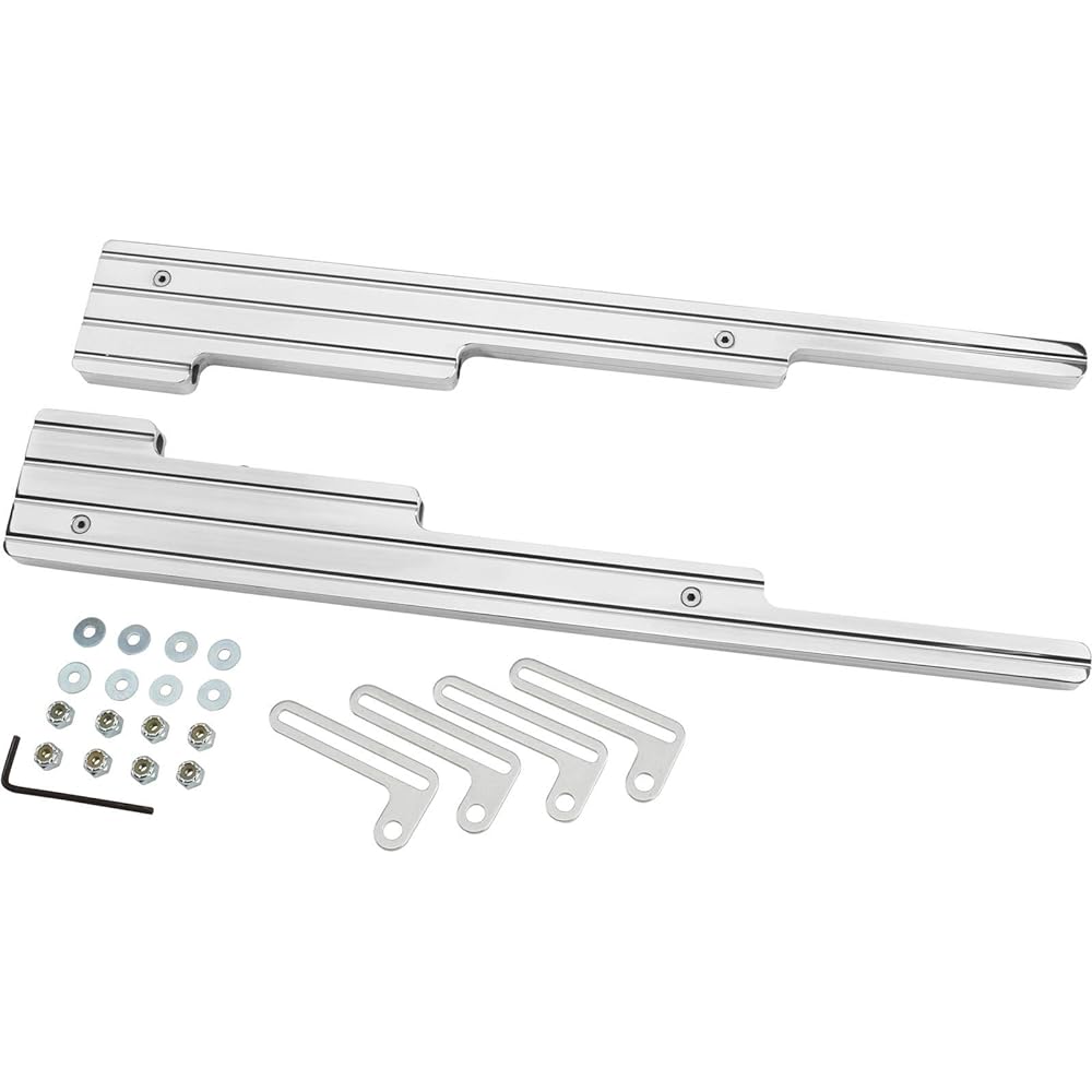 This billet spark plug's wire guide provides a clean alternative to routing the ignition wire dilemma, allowing the wires to function in a simple and uncomplicated manner. Its aluminum construction features a polished finish that allows your motor to stand out while keeping the wires safely off and dissipating heat. They are universal fit and include most Ford, GM, and Mopar V8 engines. This billet wire loom features adjustable tab bases attached to the valve cover mounting bolts. Up to 8mm wire, works with almost all V8 engines. Hidden internal groove, adjustable mounting tab for split spark plug wires up to 8mm diameter installed on almost all V8 engines Polished aluminum sleek design