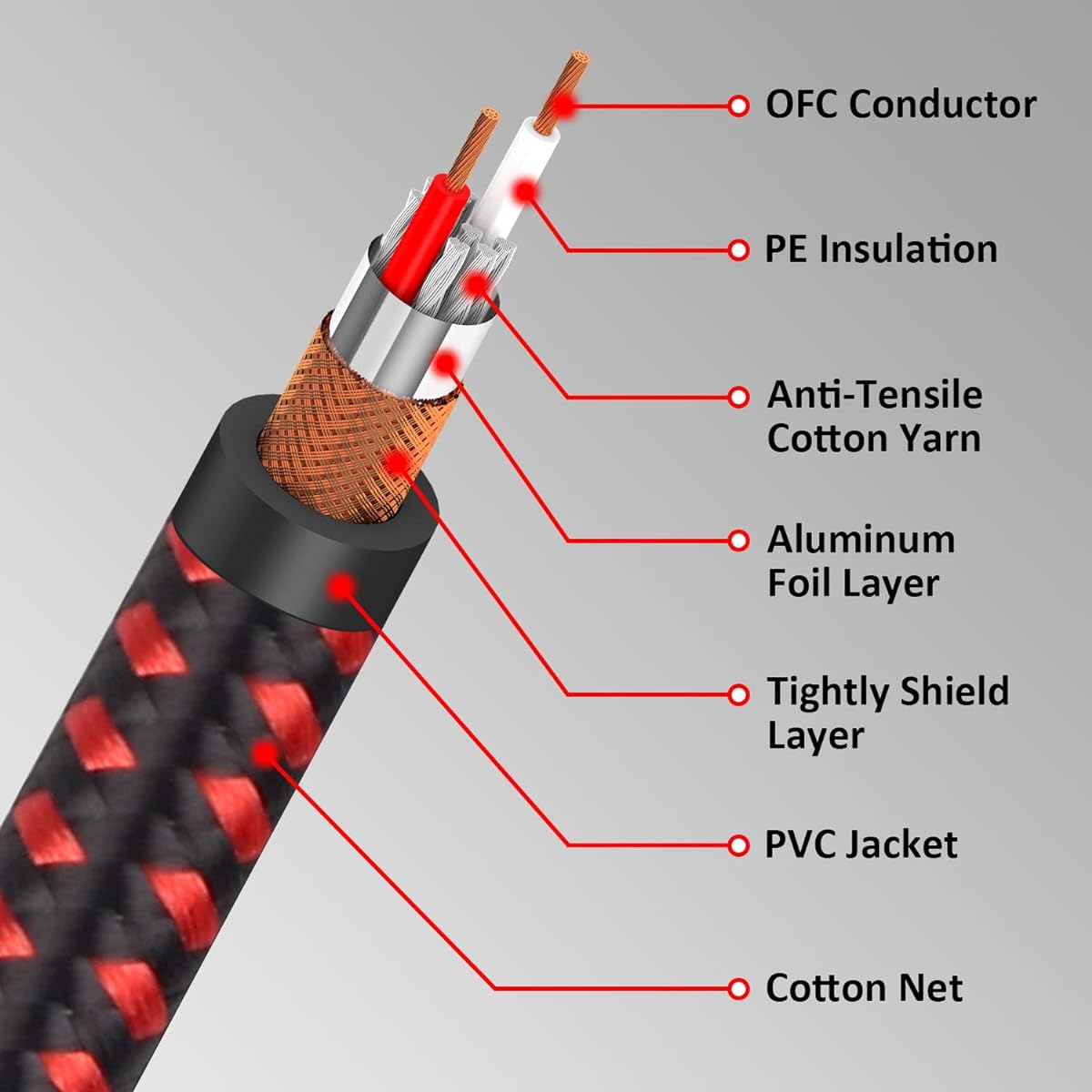 {UIVERSAL COMPATIBILITY}: TIMEYES 65mm to XLR Audio Cable. Adopting sturdy aluminum metal housing (6.35mm) and zinc alloy metal shell (XLR), effectively reducing signal attenuation, anti-corrosion & anti-oxidation pure copper gold-plated plug & pin, perfect sound quality. {Reliable and Pure Sound}: The core of TIMEYES 1/4 inch to XLR balanced interconnect cable is 22AWG oxygen-free copper (OFC) conductor, covered with polyethylene insulation, inner cotton thread wrap, aluminum foil shield, thick A tight bare copper metal shielding layer provides lossless signal transmission and maximizes noise cancellation without interfering with external signals. {Unique Magnetic Ring}: TIMEYES TRS 6.35mm - XLR cord has two anti-interference magnetic rings, with anti-interference and filtering function, stable signal transmission without loss, noise or hum guarantees superior durability and high-fidelity sound quality. {Durable Jacket Construction}: This cable is woven with a high tensile strength black & red tweed woven jacket, with flexible and durable heat shrink tubing that is anti-pull, abrasion resistant, and anti-vibration. and delivers long-lasting performance.