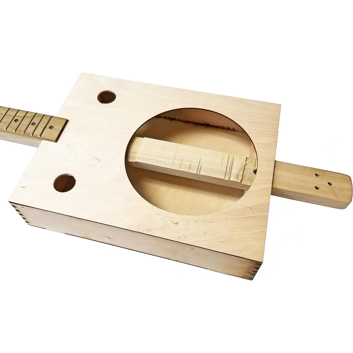 Detailed and easy-to-understand assembly instructions. Build your own 3-string acoustic paint can resonator cigar box guitar. Unfinished body and neck provide endless decoration options - create a piece of musical art. Full fret neck with zero fret, standard guitar scale (25 inches) Only basic tools required for assembly. Perfect for use with children.