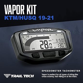 Vapor speedometer tachometers are popular with both on-road and off-road enthusiasts. Vapor's large digital tachometer bar graph is easy to read. With its small size of 4.2 x 2.3 inches, the Vapor is perfect for all types of riding, including cross-country, trail riding, and track. The main features are a large RPM graph and speed readout with more data built in. At the top, a programmable LED light flashes when shifting gears or during overheating events. If indicators are required, the Indicator Dashboard Accessory (022-PDA) is available and provides space for four indicator lights such as neutral and high beam. Vapor is a clean choice for most applications because it is small and can be installed in any vehicle.
