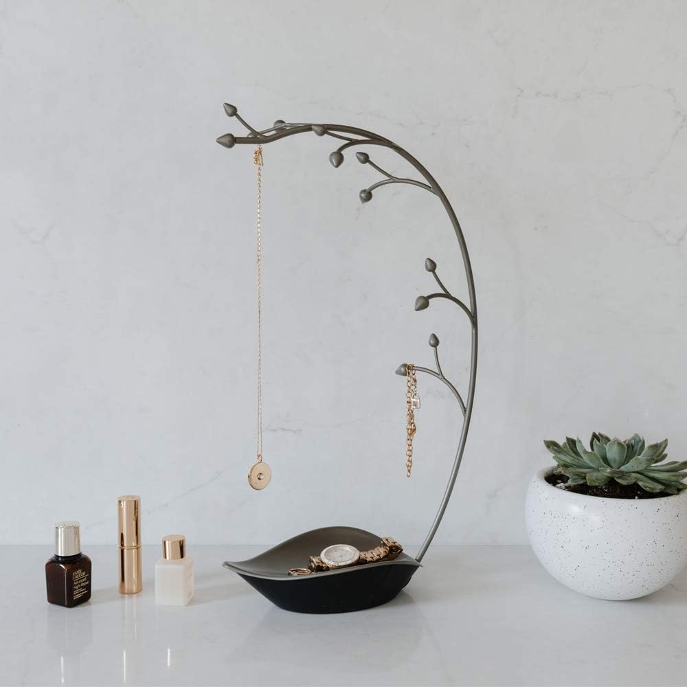 umbra ORCHID Jewelry Tree Accessory Storage Gunmetal Jewelry Storage Stand Accessory Case