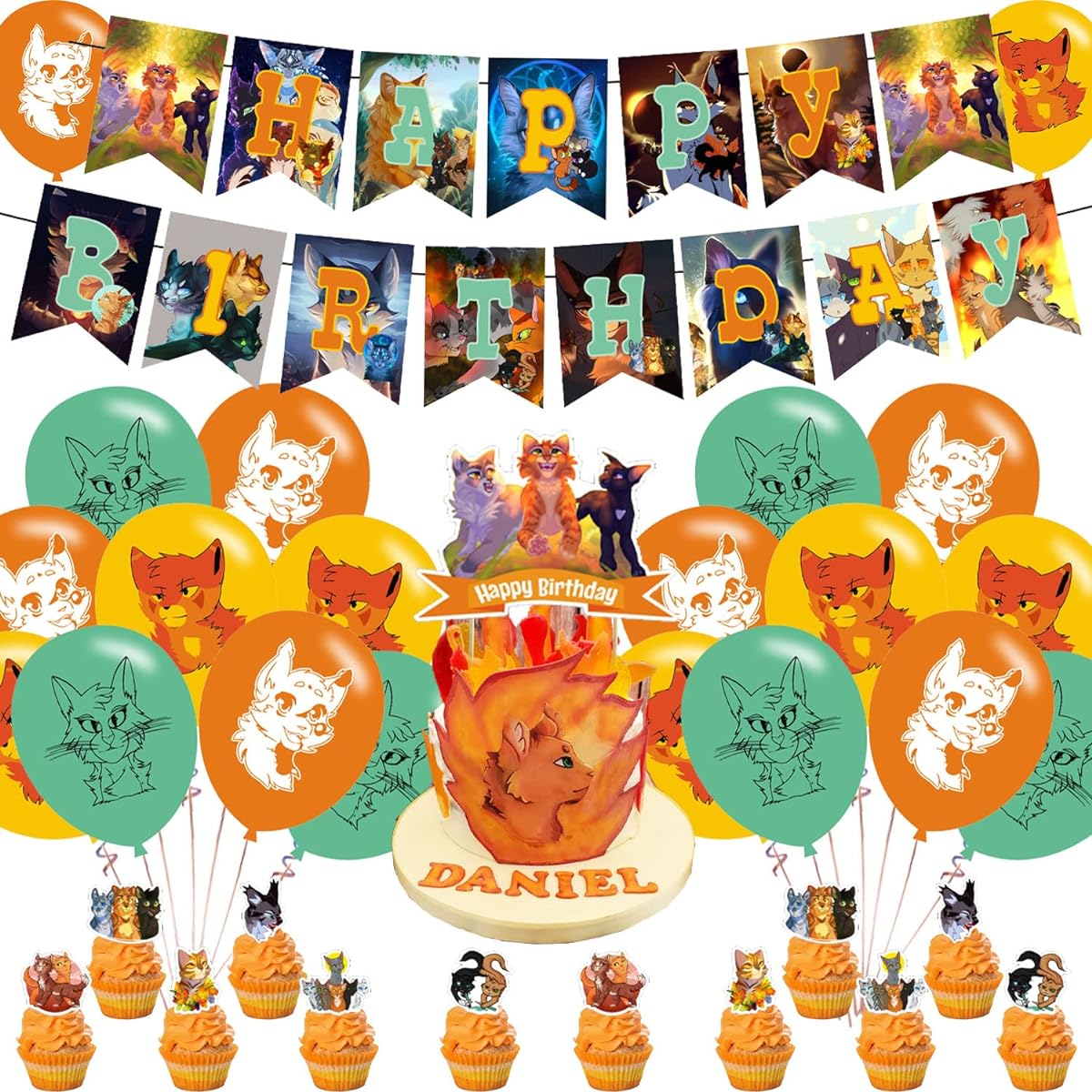 Warriors Cats Party Supplies, Birthday Party Decorations Warriors Cats Kids Happy Birthday Banner, Cake Topper, Warriors Cats Balloons Theme Birthday Party Decorations