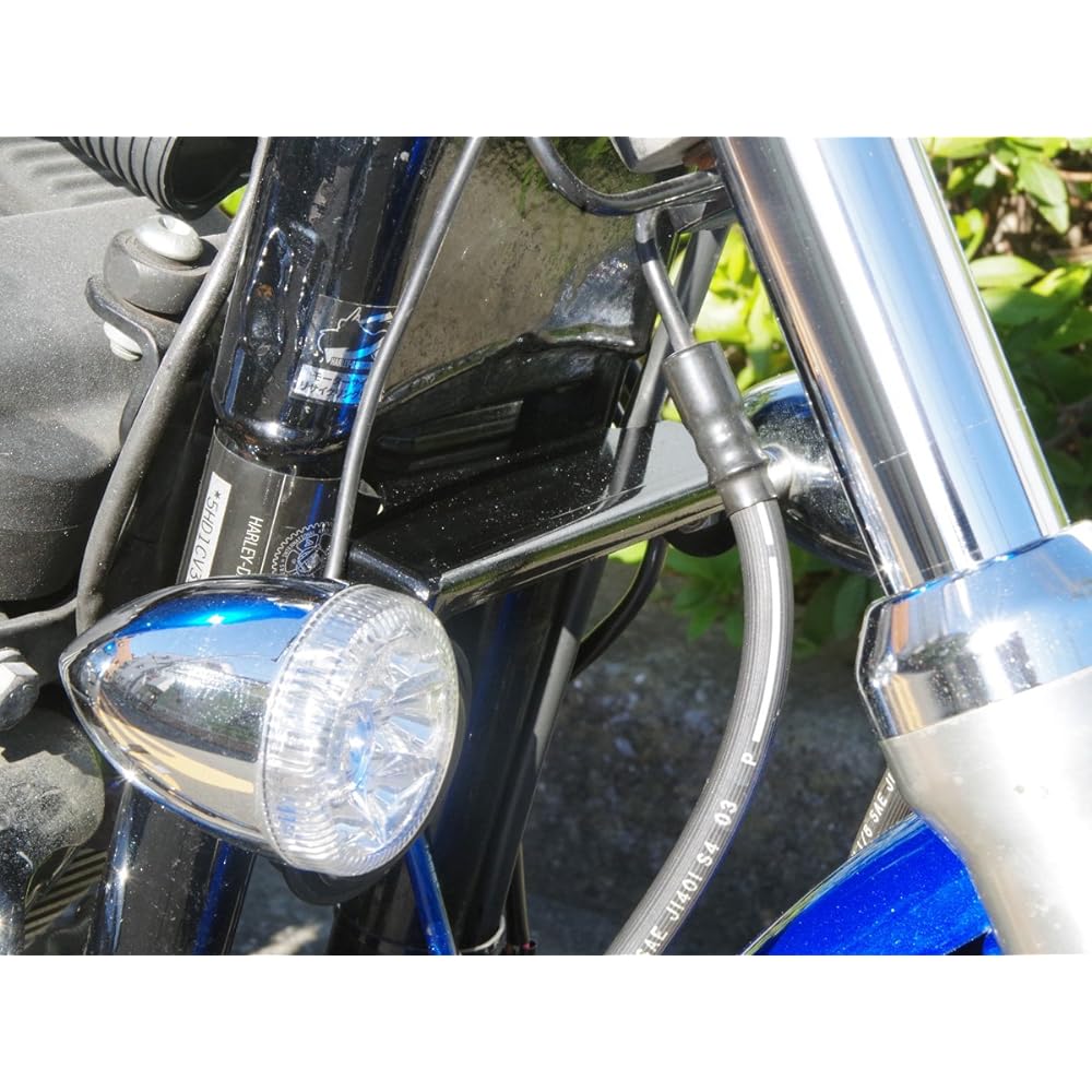 Turn signal relocation kit to make the front area look as clean as possible without destroying the Sportster's design. [Front turn signal relocation kit for Sportster wxl-15] Attaches to the frame down tube of the Sportster and connects the frame and stays. By painting it with a glossy black paint so that it looks assimilated, the front area was made as clean as possible without disrupting the design of the body itself. The front turn signal stay for the Sportster is made from a steel plate and is a rare, one-of-a-kind item that differentiates us from others. Precautions for use: Genuine Sportster front turn signals can also be installed by bolt-on, but the distance between the left and right turn signals will be shortened, so they will not comply with vehicle inspection. In order to make it suitable for vehicle inspection, it is necessary to adjust the distance between the left and right turn signals to about 300mm using a longer bolt and collar.