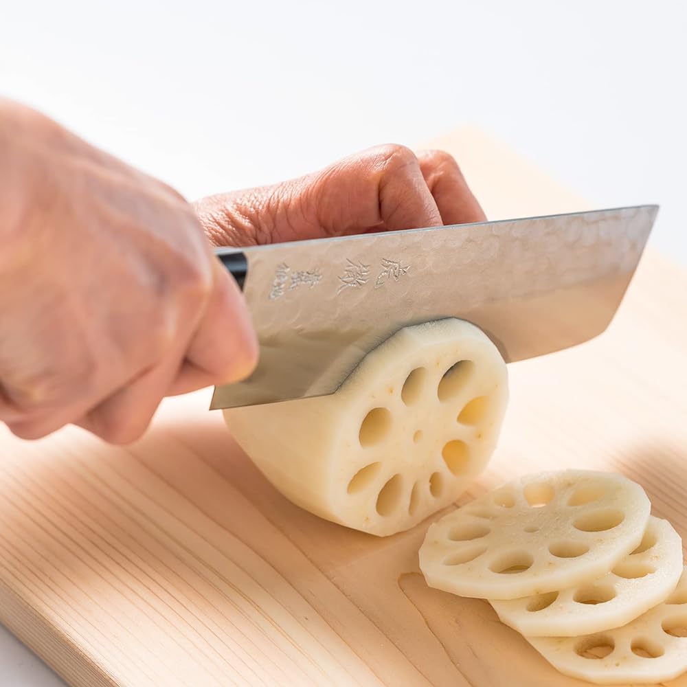 [Features] Hitachi Yasuki Steel Aogami No. 2 and SUS410 three-layer structure blade base material Hitachi Yasuki Steel Aogami No. 2 boasts overwhelming sharpness, ease of sharpening, and outstanding durability. Experience the sharpness of No. 2 The wooden handle has a rounded design for a stable grip and is more prone to rust than stainless steel, which has its edges sharpened by hand by craftsmen one by one. It can be used for a long time without problems by wiping off moisture after use [Hitachi Yasuki Steel Aogami] Iron sand-based raw iron used in the world-famous high-grade cutlery steel Japanese sword made at the Hitachi Metals Yasugi Factory in Shimane Prefecture. Among them, Aogami No. 2 is made using high-grade knife steel that is popular in Western knives.It is made using appropriate heat treatment and sharpening processes that take advantage of its characteristics. [Nakiri Knife] This knife is suitable for cutting vegetables such as juliennes and round slices.Color: Yasuki Steel Aogami